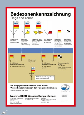 DLRG-Haus/ Hauptwache DLRG, Kalifornien (saisonal) DLRG-Haus Promenade 29 Tel.: 04344-1211 Alte Heidkate/ Ecke Strandweg 24217 Schönberg 24217 Wisch/ Heidkate Tel.: 04344-8032 Tel.: 04344-2232 www.schoenberg.dlrg.de 38 38