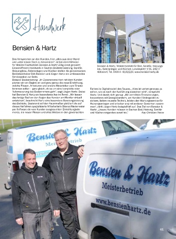 Heizungsbau, Solaranlagen und Küchen stellen die gemeinsamen Höhndorf, Tel. 04344–8192220, www.bensienhartz.de
