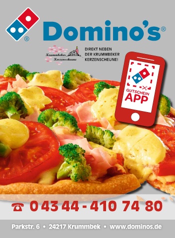 Schönberg im Sommer 2020 DIREKT NEBEN DER KRUMMBEKER KERZENSCHEUNE! GUTSCHEIN APP 0 43 44 - 410 74 80 Parkstr. 6 • 24217 Krummbek • www.dominos.de