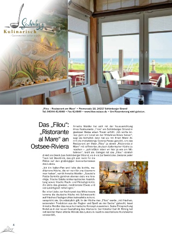 Tel. 04344-414848 • Fax 414849 • www.filou-ostsee.de • Um Reservierung wird gebeten.