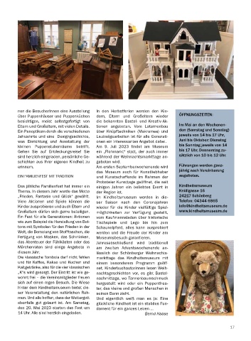 „Frieden, Fantasie und Glück“ gewählt. Im Kindheitsmuseum werden in die- 24217 Schönberg