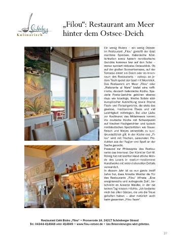 Tel. 04344-414848 oder 414849 • www.filou-ostsee.de • Um Reservierungen wird gebeten.
