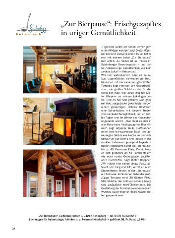 „Zur Bierpause“, Eichkampredder 6, 24217 Schönberg • Tel. 0170-83 50 22 3