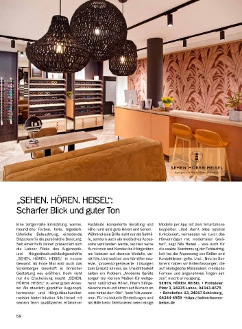 „SEHEN. HÖREN. HEISEL“ in neuem rät Nils. Und weil bei den Hörhilfen neu- Kontaktlinsen gelte. Und: „Neu im Sor-