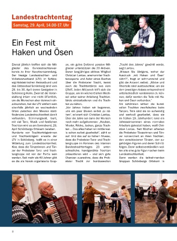 um die Menschen aber dennoch ein- tänze einzustudieren und die Trach- ken und Ösen verbunden.“