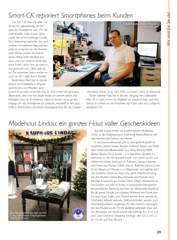 Das Modehaus Lindau liegt zentral das Modehaus am Weihnachtsmarkt-Sonntag, den 9.12. und