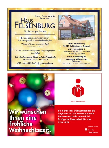 •1. und 2. Weihnachtstag sowie Neujahr geöffnet Telefon 0 43 44 / 12 16 und