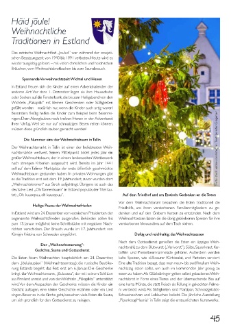 dem „Jõululaupäev“ (Weihnachtssamstag); die russische Bevölke- Eine alte Tradition besagt, dass man neun- bis zwölfmal am Weih-