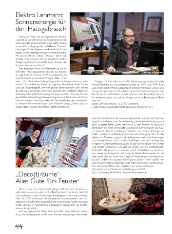 zeugen diese Anlagen noch Strom“, klärt Lehmann auf. E-Mail: andreas.lehmann@el-elektrolehmann.de, Tel. 04344-1391