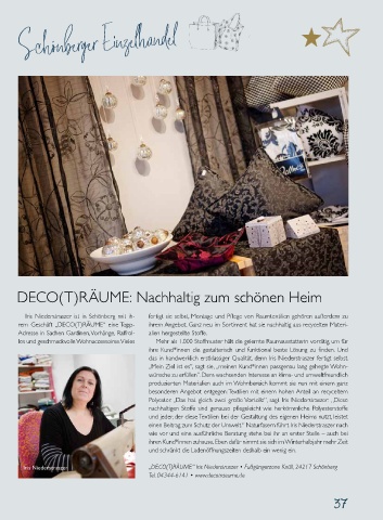 rem Geschäft „DECO(T)RÄUME“ eine Topp- ihrem Angebot. Ganz neu im Sortiment hat sie nachhaltig aus recycelten Materi-