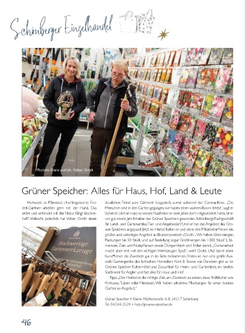 für Land- und Gartenartikel, Tier- und Angelbedarf. Und er hat das Angebot des Grü-